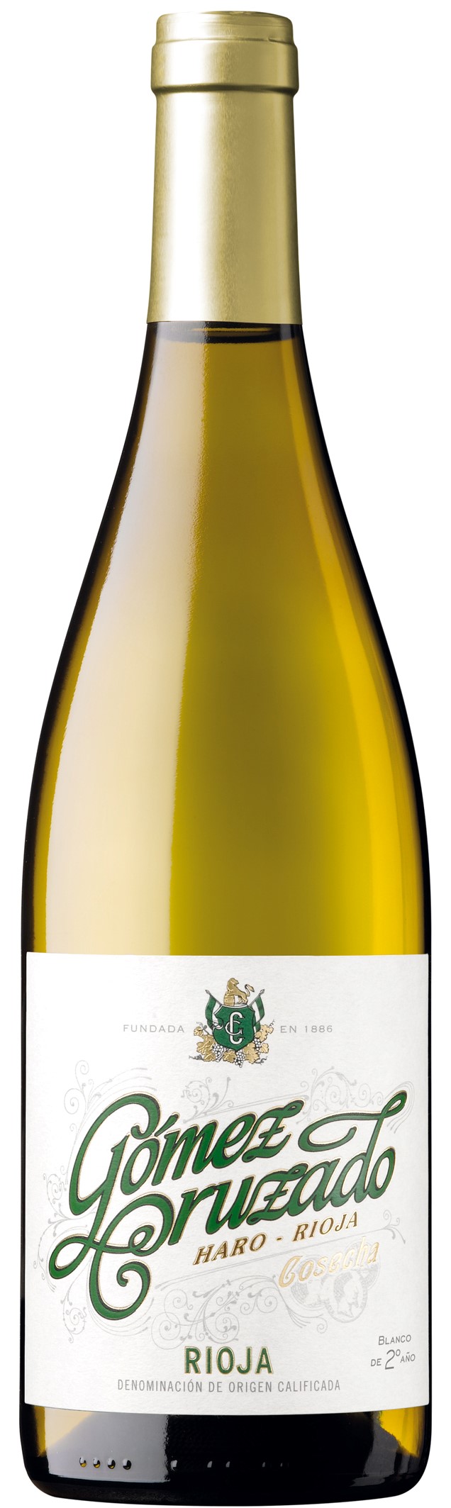 Gómez Cruzado Blanco 2024 2º Año es un vino blanco riojano elaborado con variedades autóctonas (Viura, Tempranillo blanco, Garnacha blanca y Malvasía), procedente de viñedos viejos en Haro y el Alto Najerilla. Criado con lías finas en barrica y hormigón, destaca por su frescura, equilibrio y elegante complejidad. Producción limitada de 45.000 botellas.