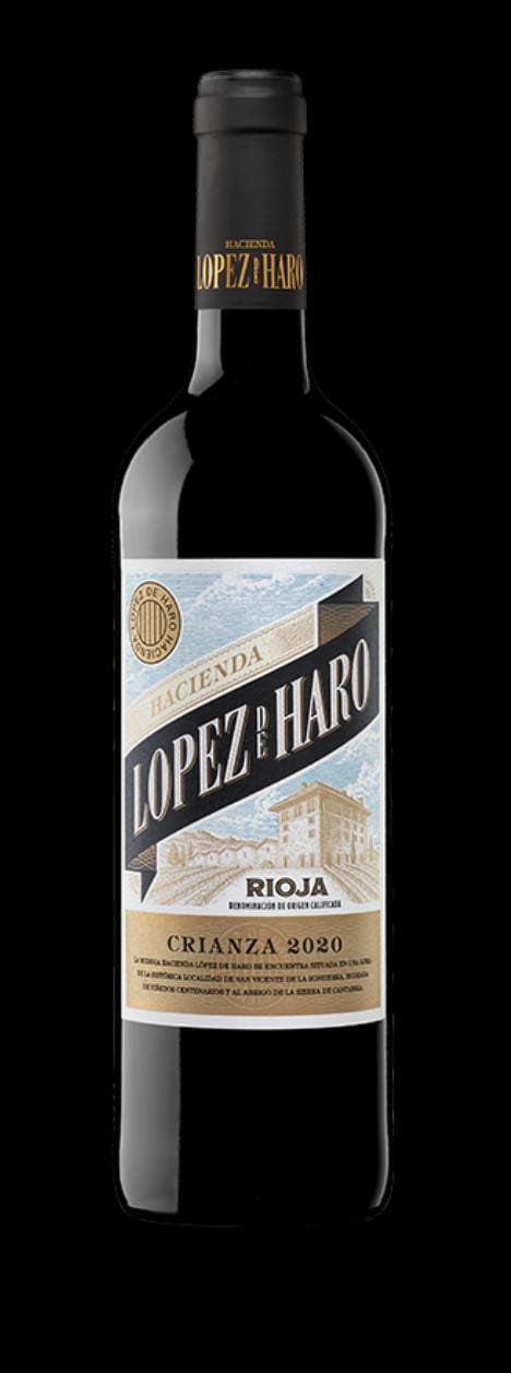 De capa media-baja y ágil, el vino tinto crianza Tempranillo Hacienda López de Haro muestra en copa una tonalidad rubí con borde atejado; lágrima fina muy poco tintada.