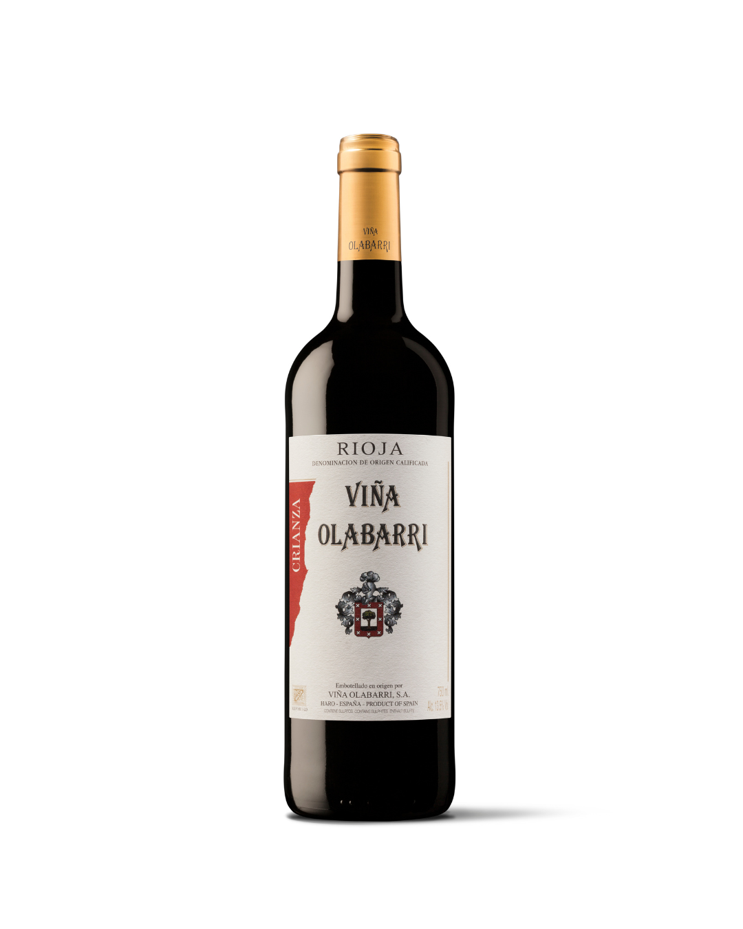 VIÑA OLABARRI Crianza 2019 es un vino tinto 100% Tempranillo de Rioja Alta, con 12 meses de crianza en barricas de roble francés y americano. Fresco, afrutado y amable, con aromas a cereza y frambuesa. Disponible en caja de 6 o 12 botellas de 75 cl.